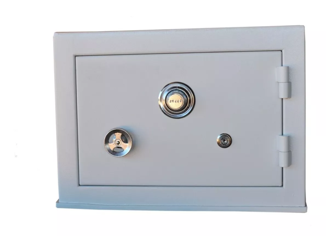 cofre vazio em chapa de aço com segredo mecânico disco de 3 combinações, com